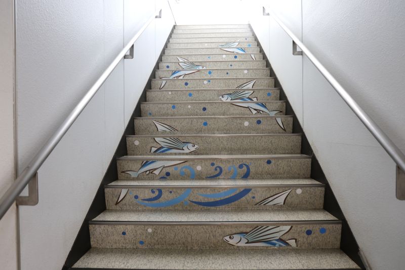 展望デッキに通じる階段。トビウオが描かれていました