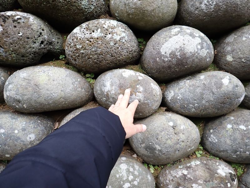 石垣が初めて崩れてわかったことですが、石の形はまちまちで積み上げた時に同じように見えるように考えて規則正しく積まれていたのです。ちなみに石1個の重さは20kg以上あり、これを流人たちは何キロも離れた海岸から山道を越えて運んできたといいます