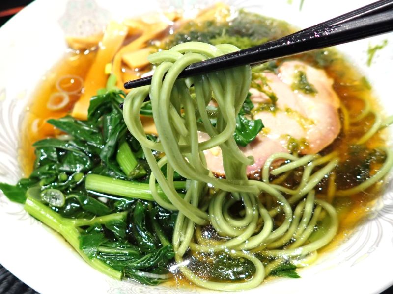 麺にも明日葉が練りこまれています