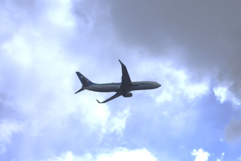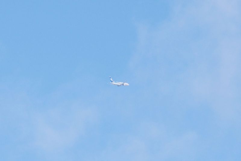 実はこの日、空港周辺はかなり強い風が吹いていました。定刻よりやや遅れて着陸態勢に入った飛行機ですが再び加速して飛び立ちました。いわゆるタッチ&ゴー!