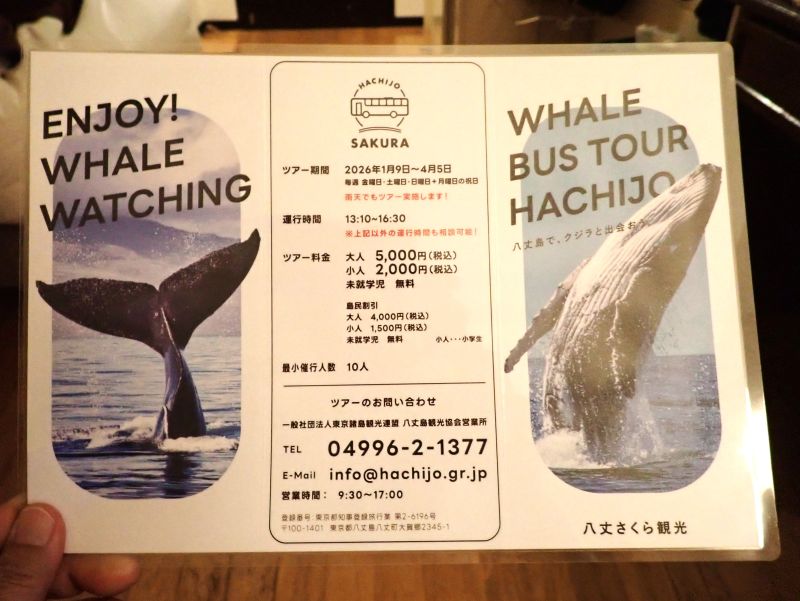 ところで八丈島は今の時期ホエールウォッチングが楽しめるのです。今回鯨たちには会えませんでしたが、もし次に訪れる機会があれば見てみたいものです