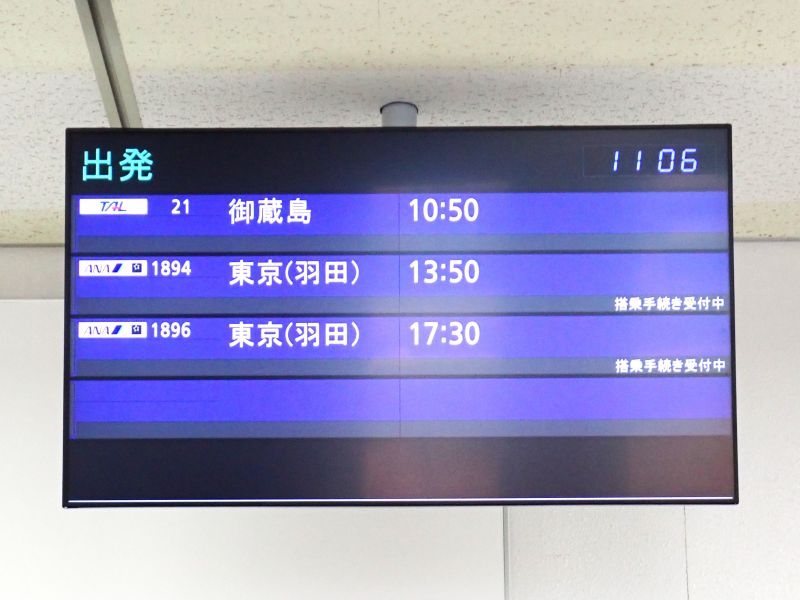 島内観光を終えて早めに空港へ。出発時間は13時50分。昼食を終えて保安検査場を通り待合室で搭乗を待ちます