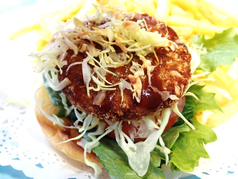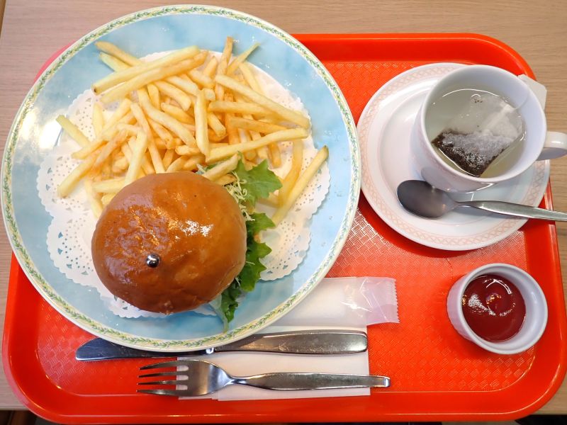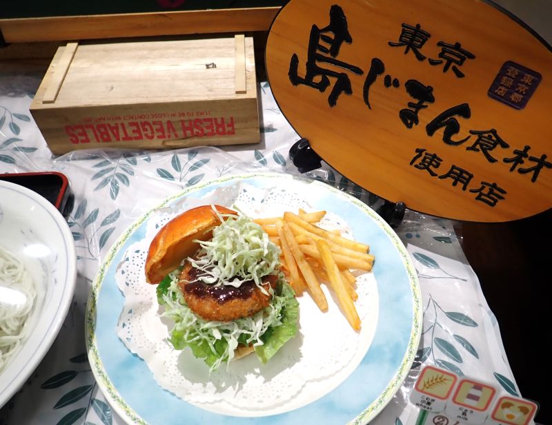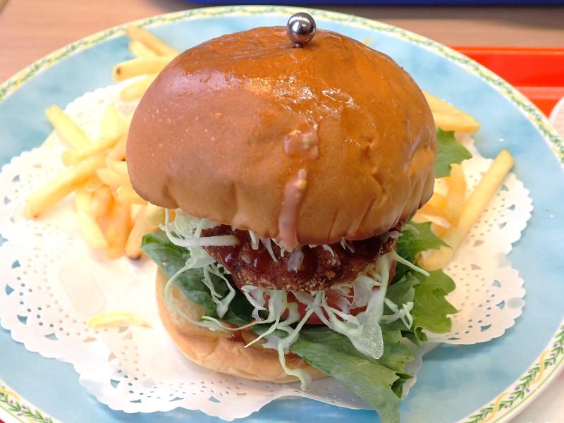前日に明日葉ラーメンを食べた空港内の喫茶で「ムロメンチバーガー」を注文