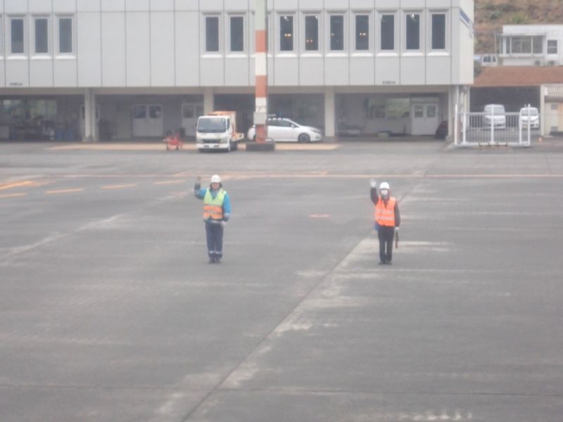 地上係員に見送られて出発