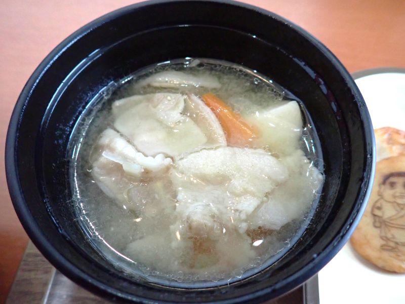 「お醤油屋さんの鍋の素 コブクロちゃん」を使ったスープを試食