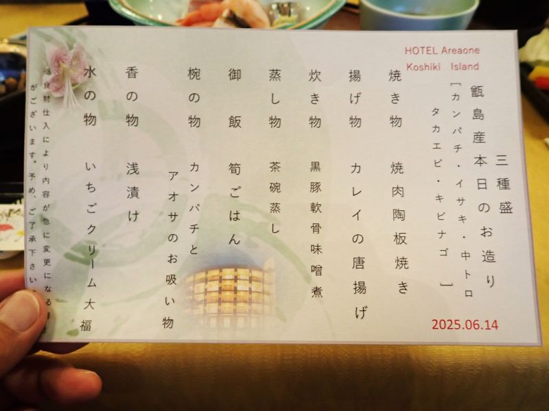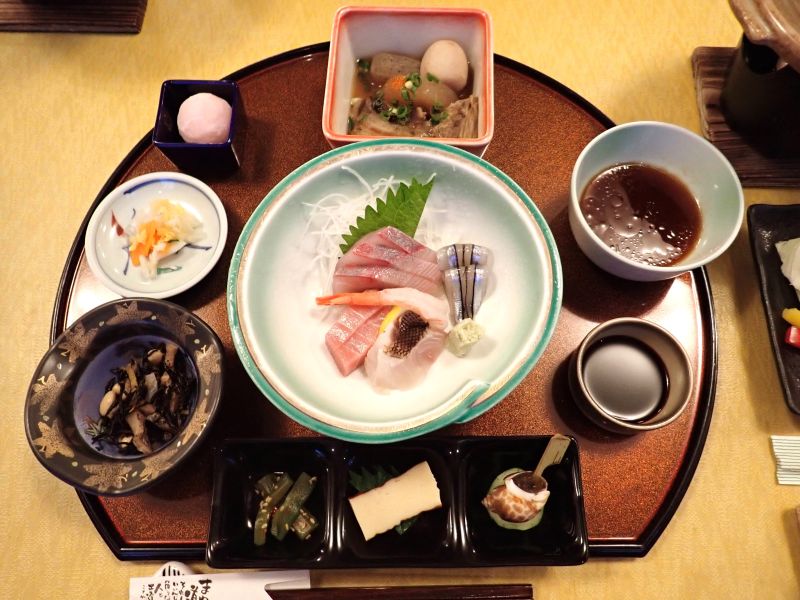 この日の昼食は和食御膳。お造りや天ぷら、出雲そばも付いていました