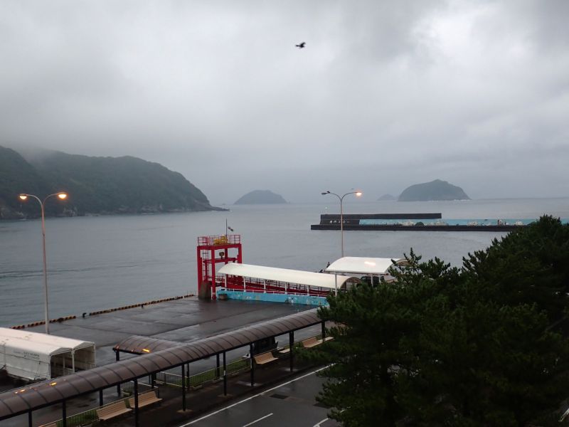 下関ではパラパラと雨の降る空模様でしたが、予約した関門クルーズ船「HANARIA(ハナリア)」は予定通りクルーズを行うとのことで唐戸港へ