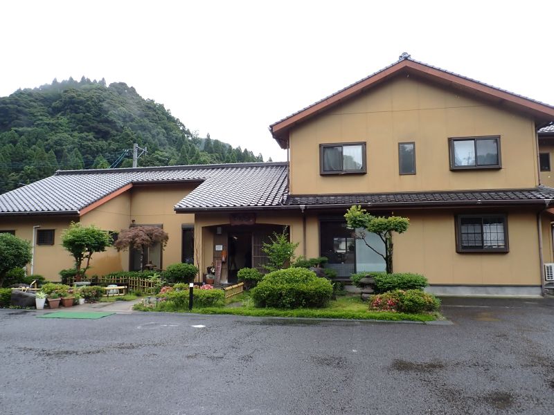 この頃には雨が止んでいました。駅から歩くこと約10分で天然温泉「日乃出温泉」に到着