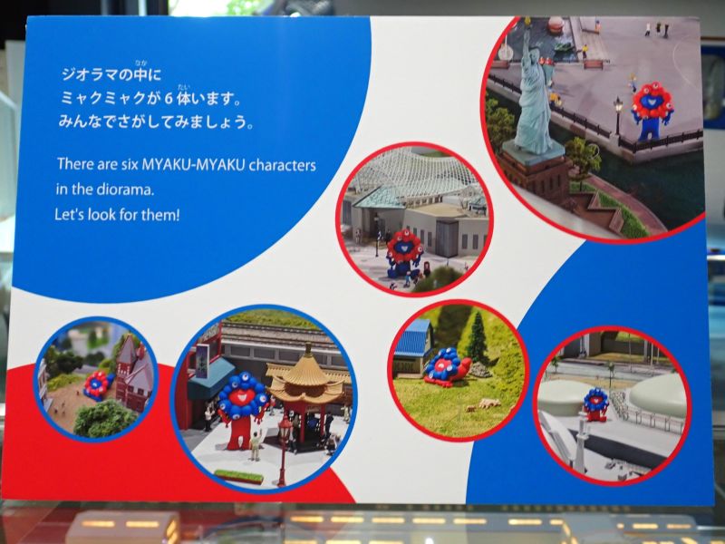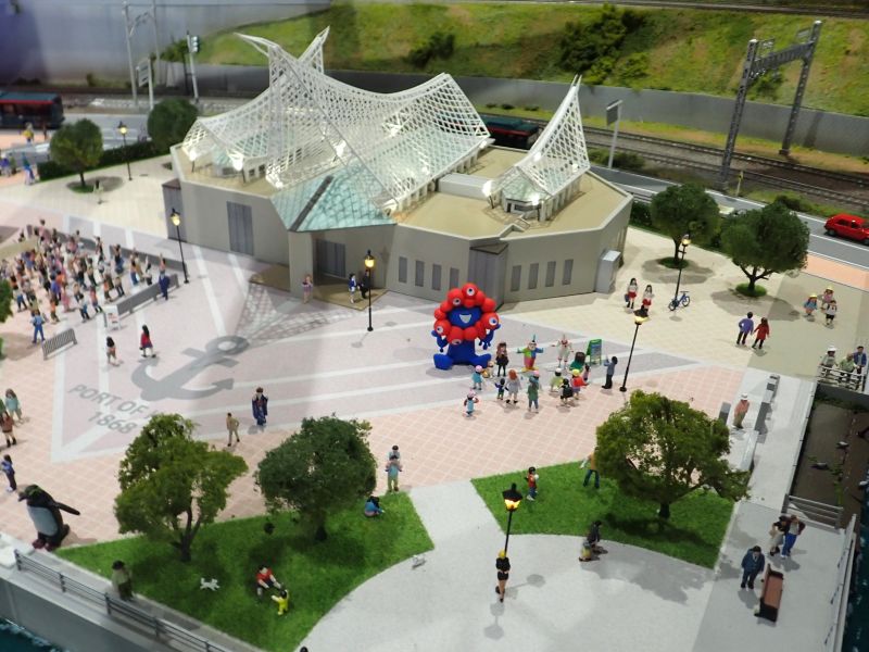 神戸のおなじみの観光スポットがジオラマ化されていますが、メリケンパークにはミャクミャクがいました