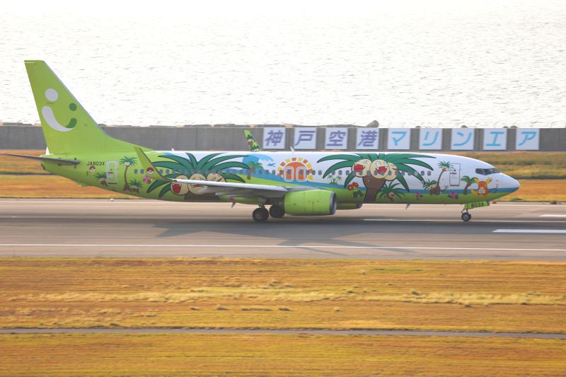 当初はバイオディーゼル発電による運航(神戸空港を飛び立つスカイマークのポケモンジェットが見えました)