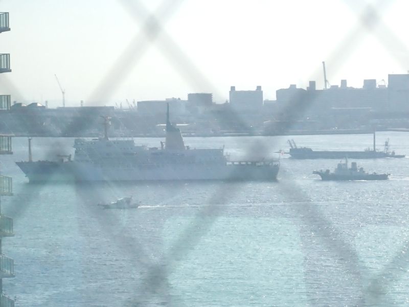 離陸後ほどなくして淡路島にあるラジオ関西送信所が見えてきました(写真中央に見える高さ135mの2本のアンテナ)