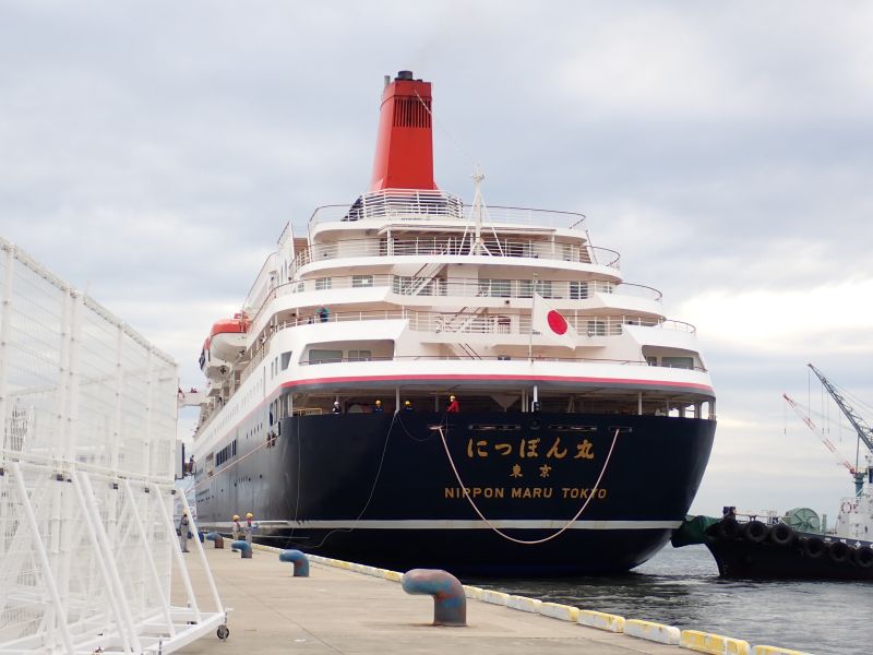 何度となく入港しているにっぽん丸ですが、山側にお尻を向けて停泊するのは久しぶりの光景