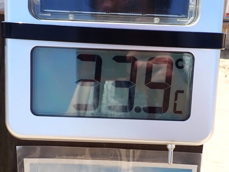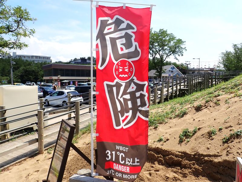 「31度以上は危険」となっていますが、幟の近くにあった温度計は「33.9℃」で超えてるやん!おそらく砂の温度は40℃を超えていたかと・・・
