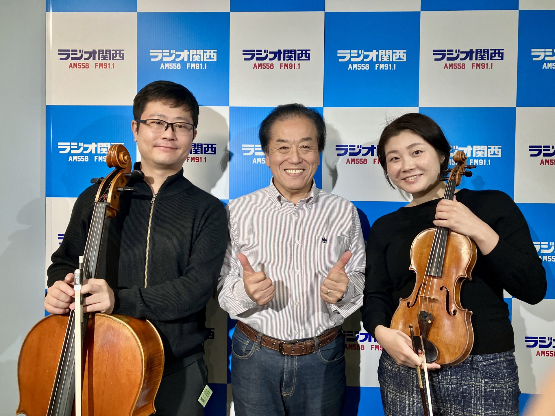 9時台はゲスト。バイオリニストの神原玲奈さんとチェリストの佐藤響さんにお越しいただきました。