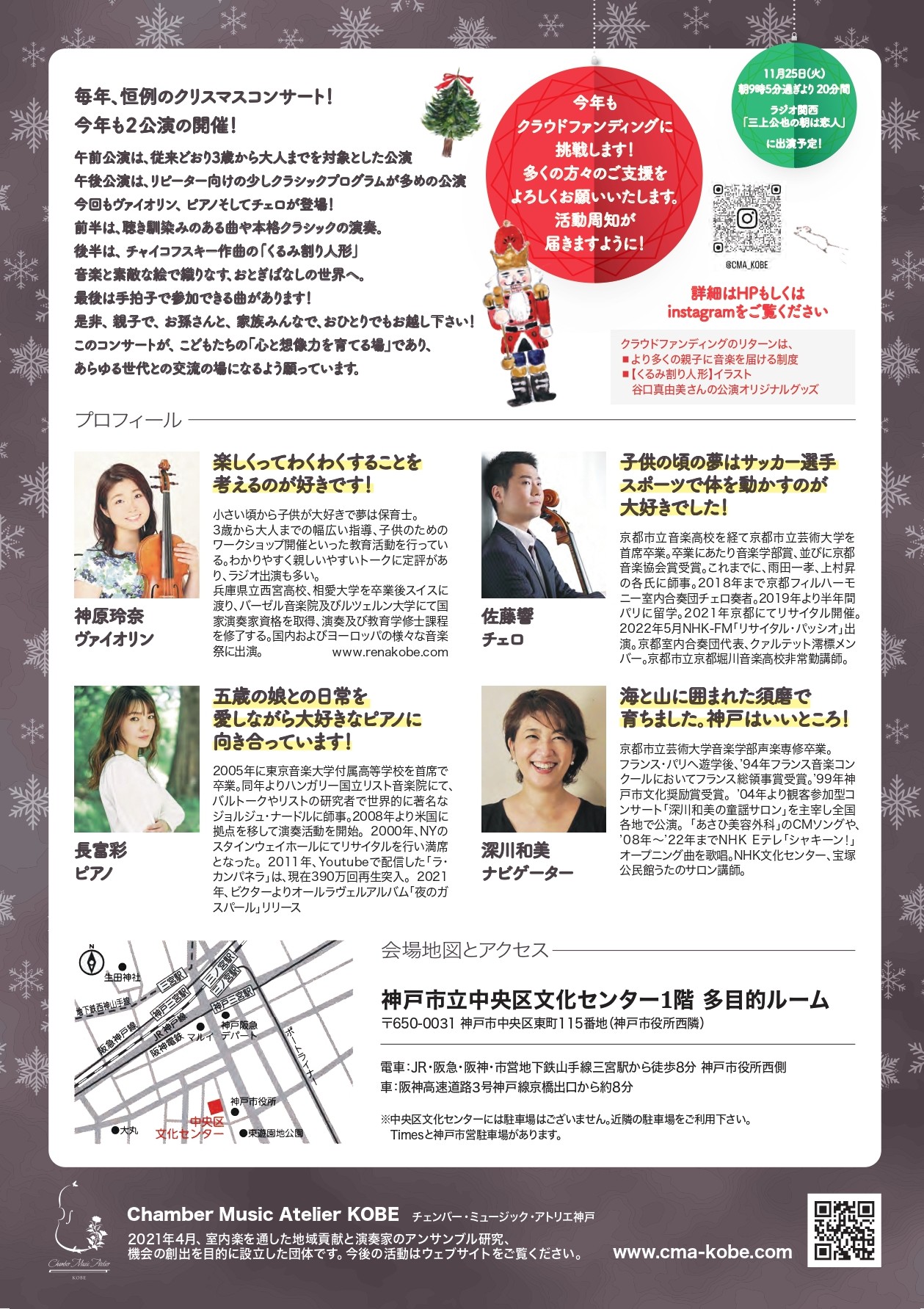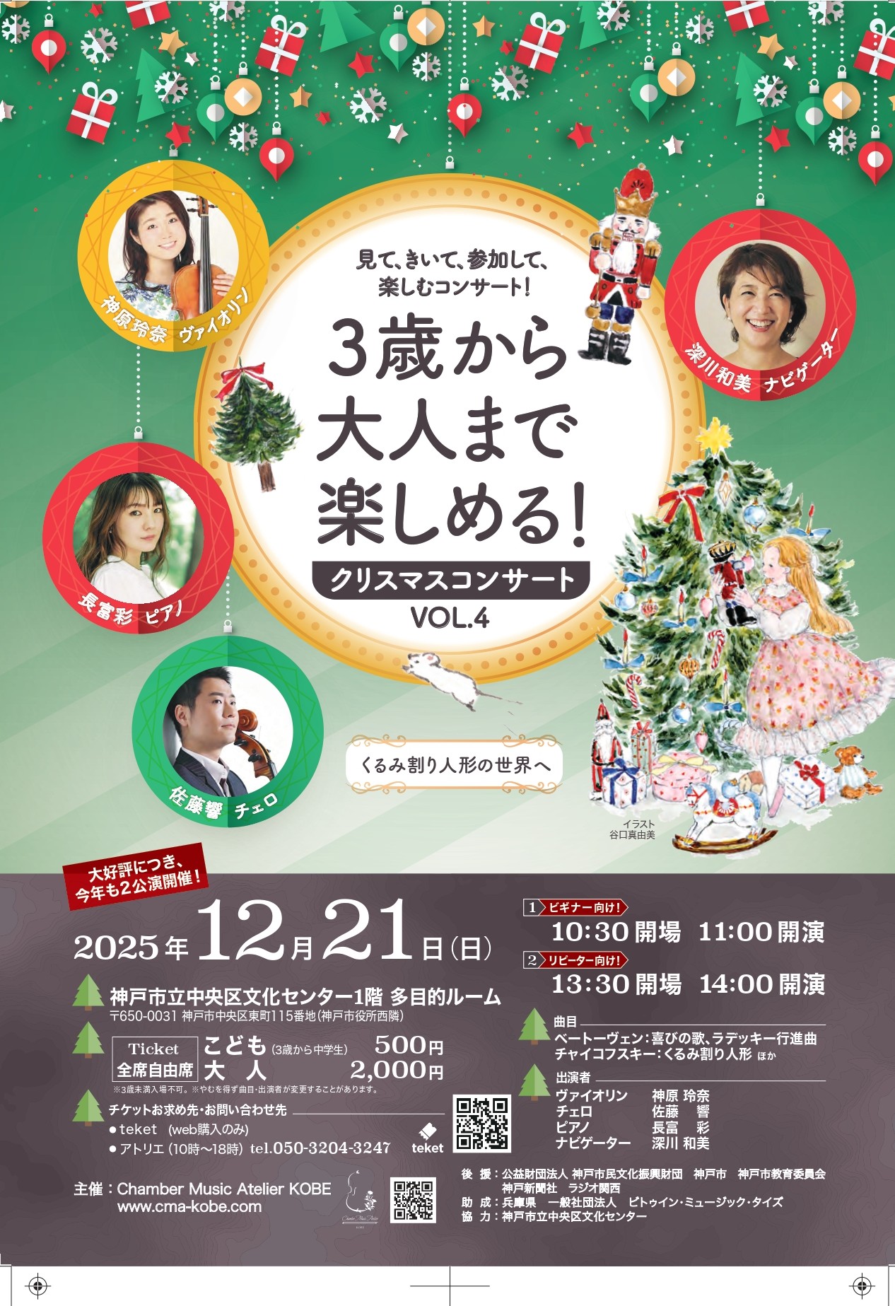 2025年12月21日(日)「3歳から大人まで楽しめるクリスマスコンサート VOL.4」@神戸市立中央文化センター1階 多目的ルーム