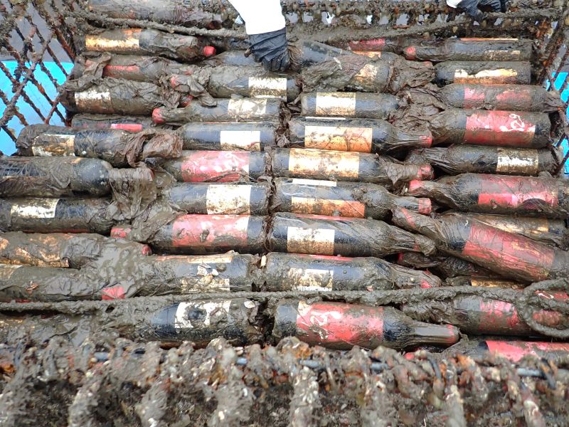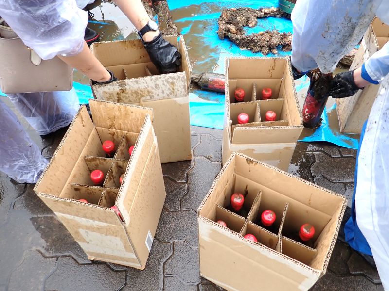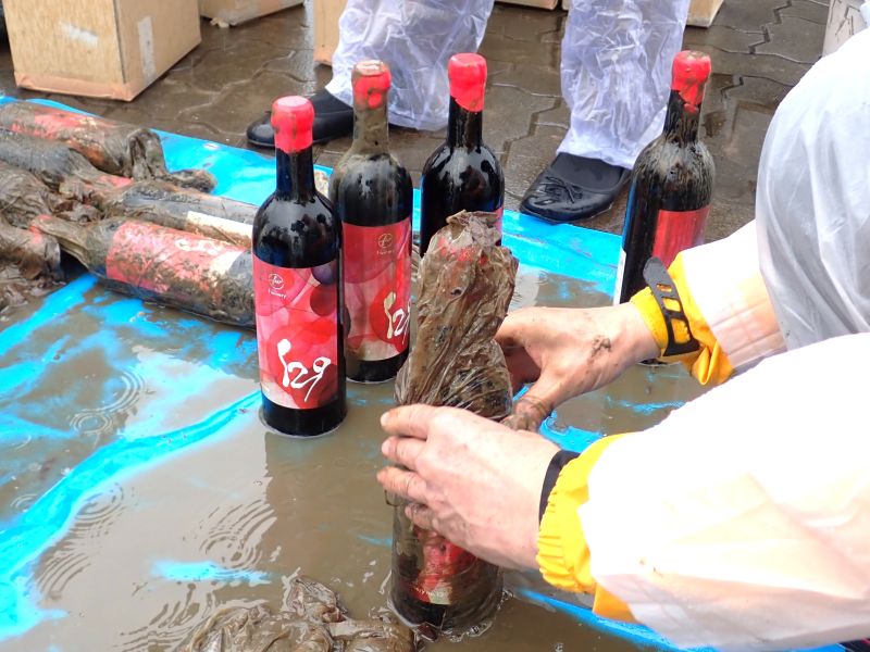 今回は去年3月に沈められた150本のうちの赤ワイン30本と白ワイン30本を取り出しました