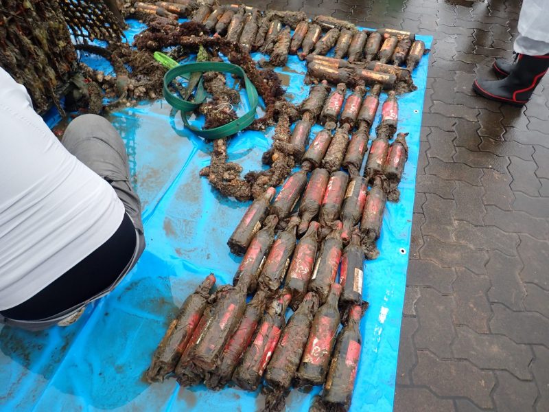 海底醸造とは「難破して海底に沈んだ船の中から見つかったワインが美味しかった」という海外の話から企画されたもので、これまでに約450本が回収されています
