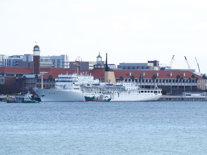 ↓下の写真は2023年4月8日の午後、「パシフィック ワールド」として神戸初入港時のもの