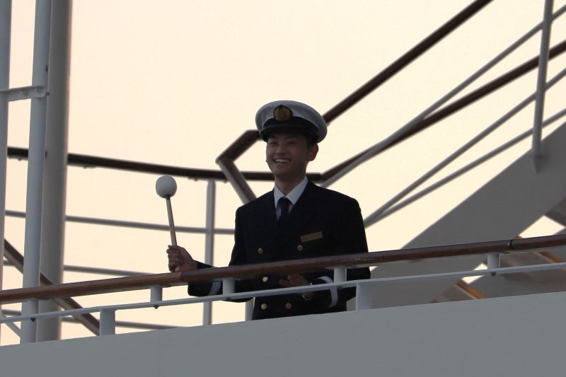 出港準備が整ったところで船上でドラが鳴らされました
