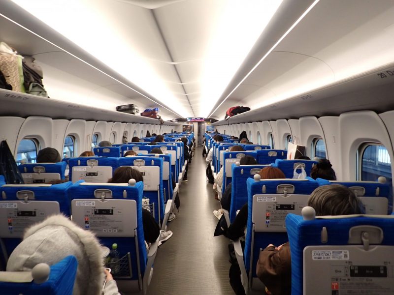 新大阪発の「ひかり」ですが指定席の14号車はそれなりに席が埋まっていました