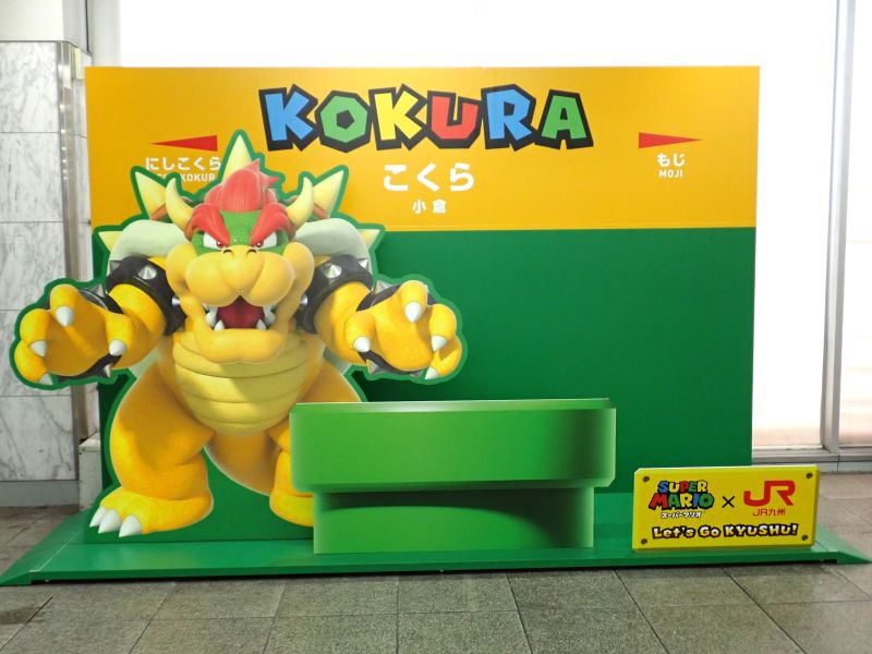 世界の平和を乱すカメ族の大魔王クッパのパネルがありました。来年6月30日まで「スーパーマリオ×JR九州 ~Let’s GO KYUSHU!~」 キャンペーン展開中とのことでこんな撮影スポットが用意されていました!