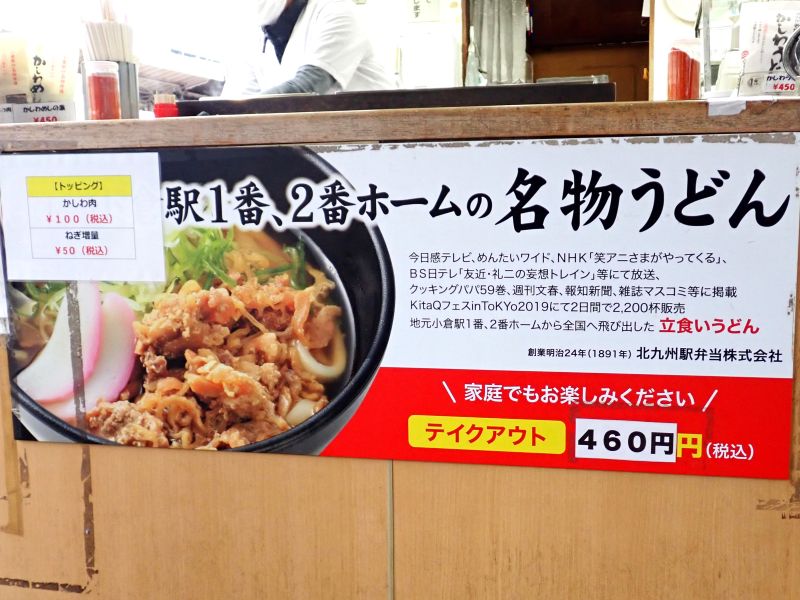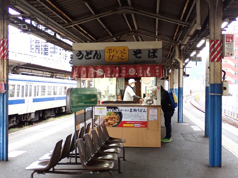 小倉駅の1番・2番ホームに名物の立ち食いうどん店があるとのことで立ち寄り