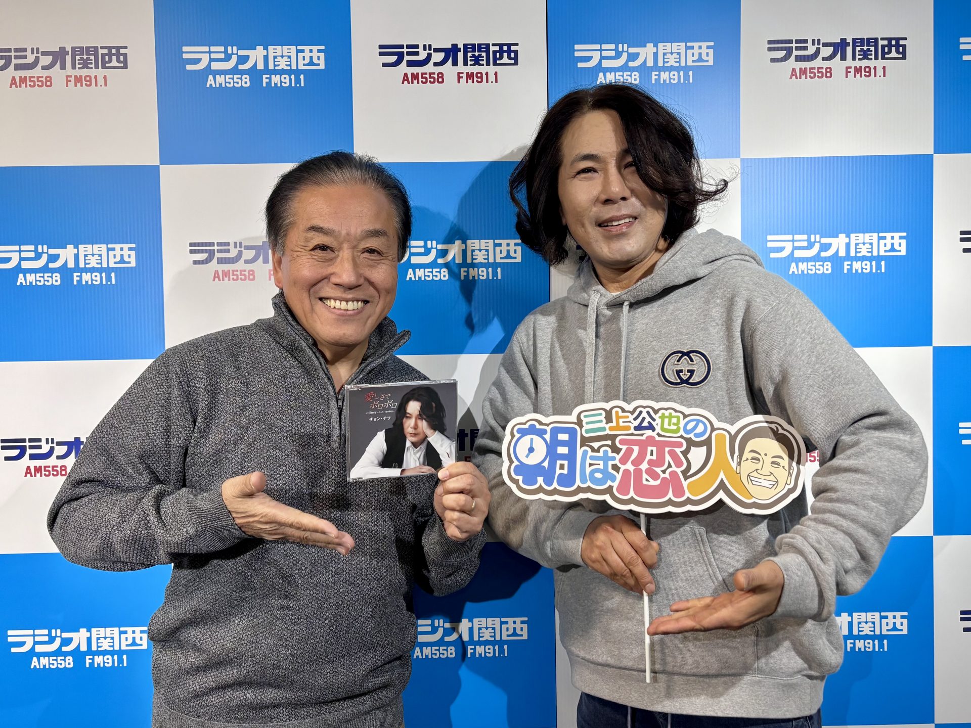 9時台はゲスト。後期高齢者の男女デュエット ハル&トシボーのおふたりと、楽曲の制作者でもある神戸の作曲家、バンビ―レコーズ代表の松岡まさるさんにお越しいただきました。