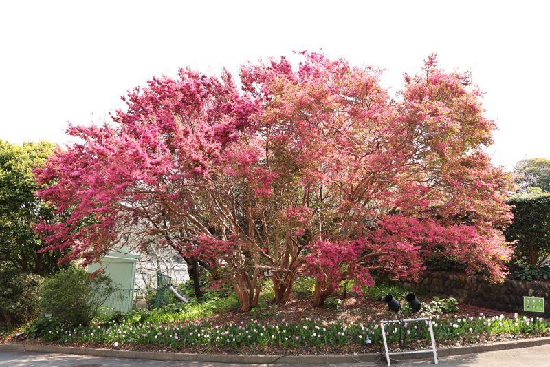 桜に対抗?見事なピンクの花を咲かせたベニバナトキワマンサクの木