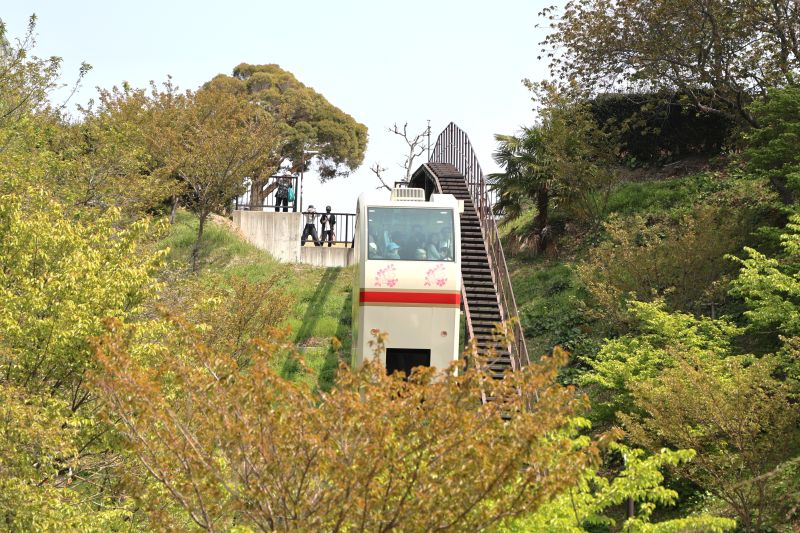 園内には約20mの高低差を楽に移動できるスロープカーも