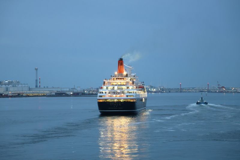 元々は白い船体でしたが2009年11月から2010年2月にかけて行われた大改装で現在の濃紺と白のツートンカラーになりました。船尾の丸い、昔ながらの船らしい船体が見られなくなると思うと寂しい気持ちです。商船三井クルーズを離れた後もどこかで活躍してくれることを願います。