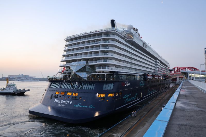「マインシフ6」はドイツのTUIクルーズが運航する大型クルーズ客船で「私の船の6番」という意味です。他にマインシフ1~5のクルーズ船を所有しています