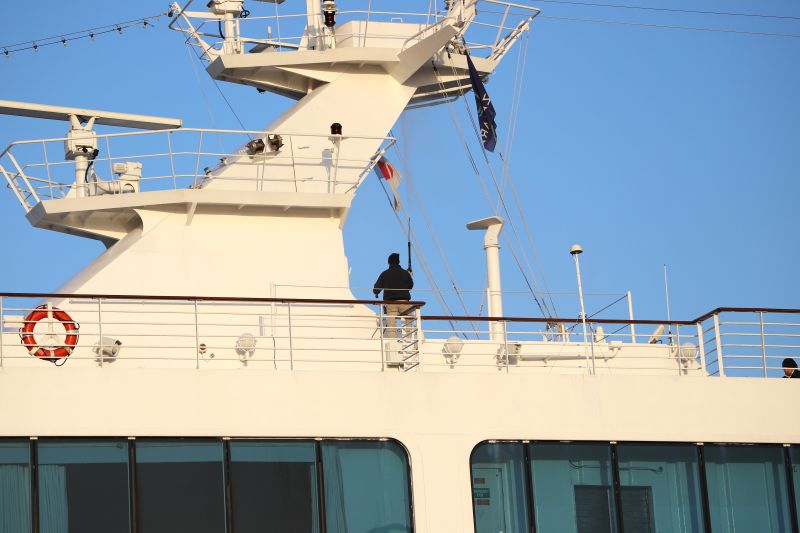 乗客やクルーの人たちが船上から「ありがとう」や「行ってきます」の声が発せられていました