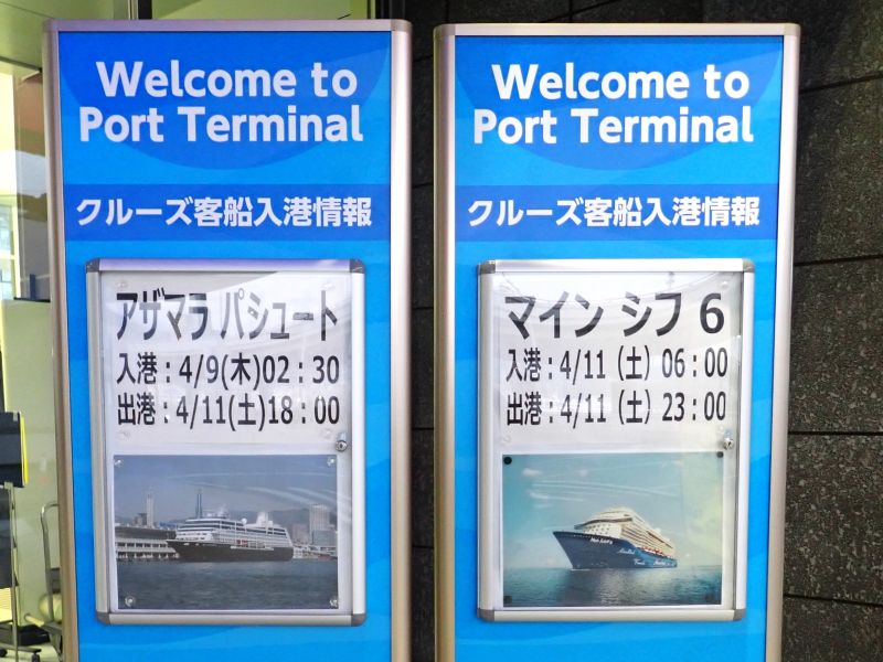 神戸ポートターミナルの玄関にボードが掲出されていました