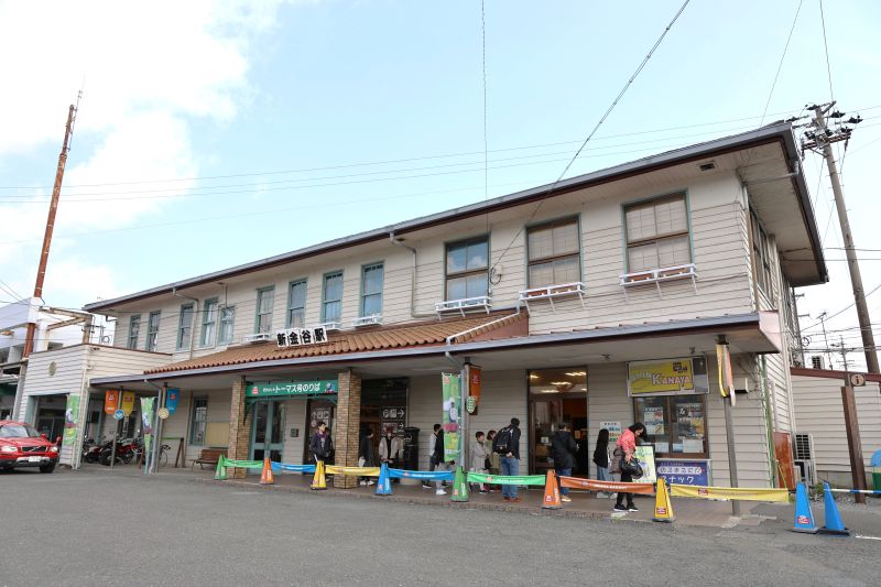 登録有形文化財に指定された新金谷駅の2階建て木造駅舎