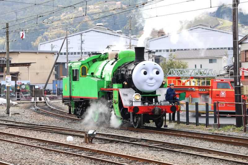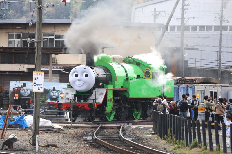 きかんしゃトーマス号の大親友「パーシー号」が煙を吐いていました