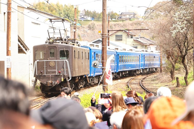 金谷に向かい戻ってきたEL急行が入線
