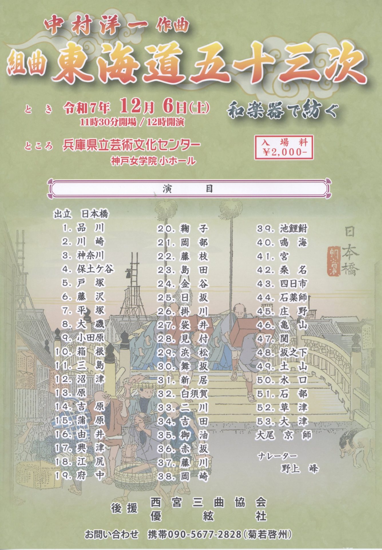 さらに番組では、菊若さんが取り組む大きな企画として、「東海道五十三次」をテーマにした全53曲の組曲を紹介しました。これは菊若さんの兄弟子である中村陽一さんが半世紀かけて作曲した大作で、亡き中村さんの思いを後世に届けるために、菊若さんが中心となって全曲演奏を実現させるという試みです。