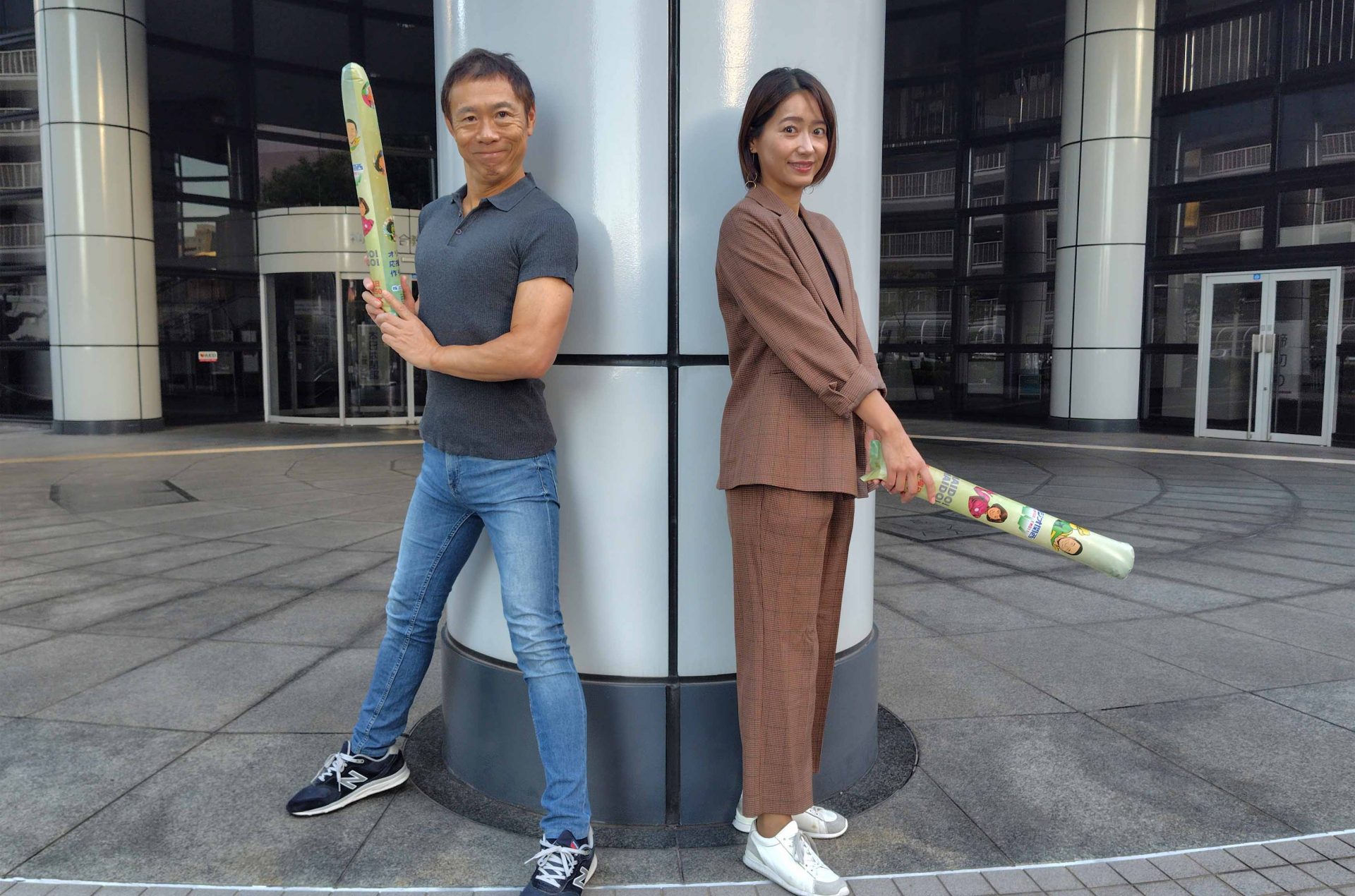 毎月第1週のプレゼントにもなっている番組オリジナル応援棒で、寺谷さんは野球、あっきんはゴルフと・・・