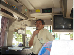ひょうご環境創造協会の菊井さんのお話でバスツアーがスタート! |