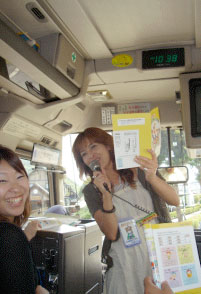 「右に見えますのは〜」と バスガイドさん気どりのみ〜たん♪ まずはみんなで「エコロジー度テスト」してみよう!! |