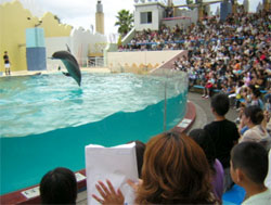 この時、スタッフのまいちゃんはイルカにいっぱい水をかけられました。