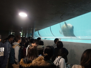 ![]() ペンギンプールの下は通り抜けチューブ。 空を飛ぶペンギンが見れるかも。 |