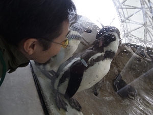![]() ラジ関スタッフの佐々木さんを嫌がるペンギン。 |