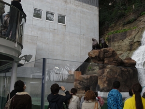 ![]() トドのダイビングは2階からも見れます。 でもぬれるので注意。 |