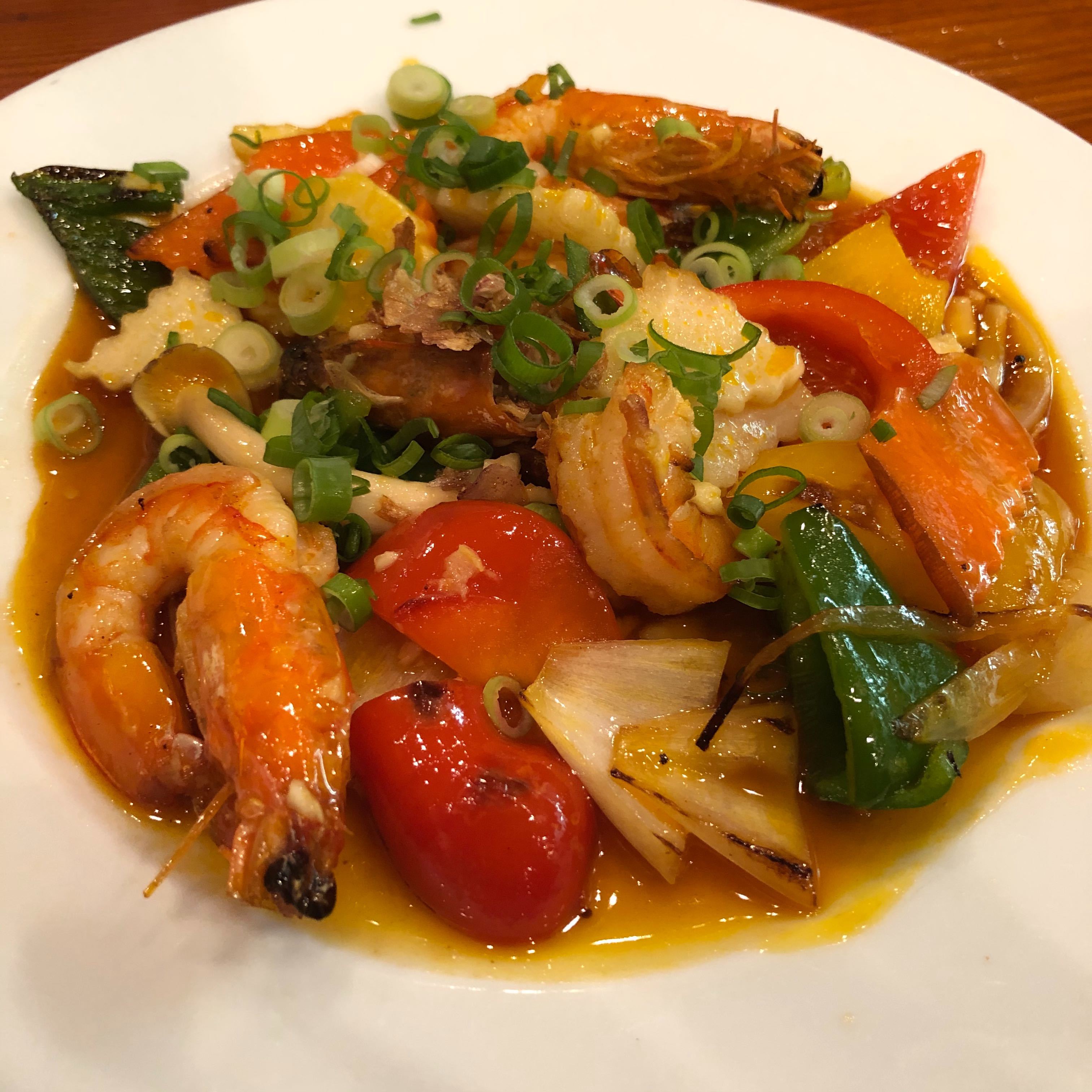 『牛肉と空心菜炒め』は、ジューシーな牛肉と空心菜のシャキシャキとした食感がマッチ。にんにくが効いていて食欲がそそられ、白米が欲しくなる一皿だ。『海老炒めメコン川風』を注文する際には、「四川風」と混同したからか、「メコン川風って、辛いんですか?」と聞いた。すると、「ピリッとはするけど、そんなに辛くないよ!」とのこと。なるほど、少々パンチの効いた、やみつきになる辛さはあるものの、炒めとしては全く油っこくなく、あっさりしてるので食べやすい。ビールがどんどんと空いていく。