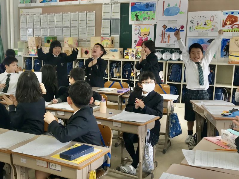 見事に選ばれたのは、1組の8班と2組6班の作品!! 児童からは大歓声があがった。