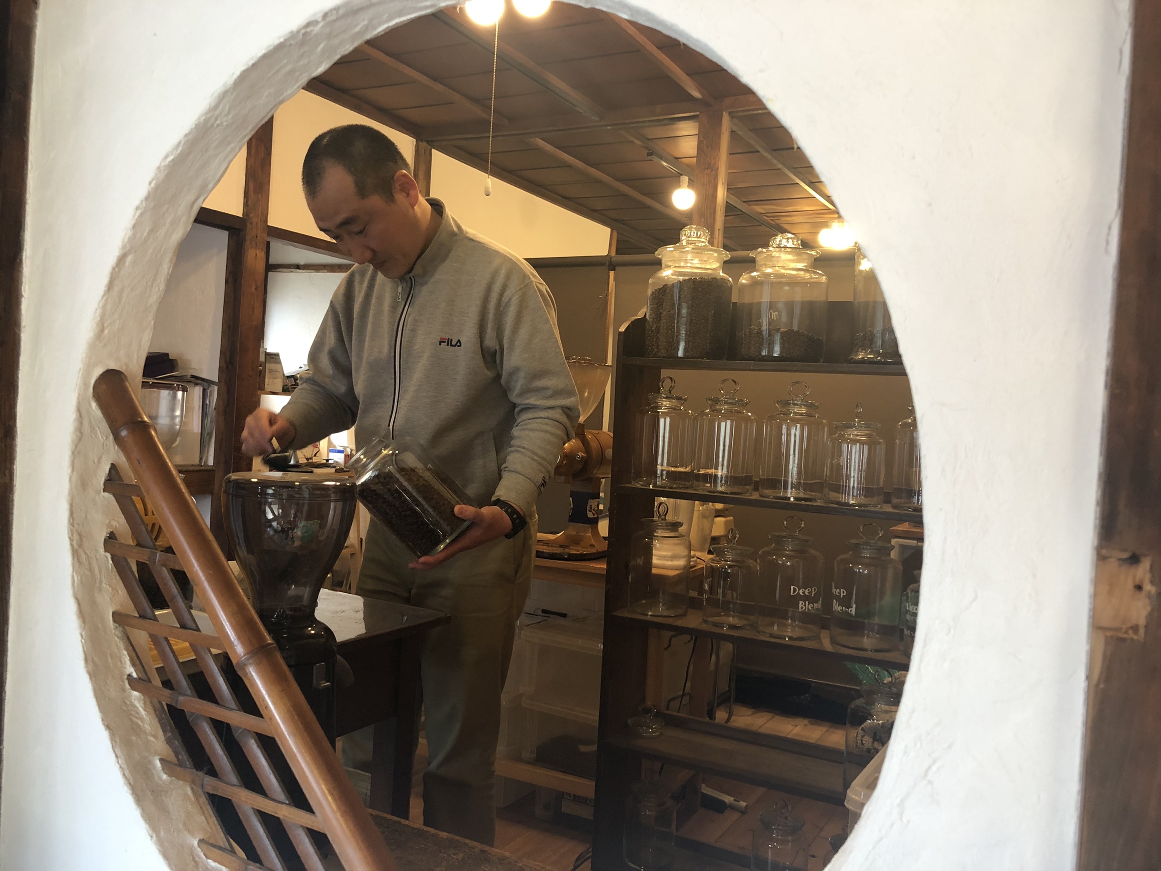 国宝・姫路城からほど近く、歴史情緒あふれる街並みが今なお残る野里地区。その住宅街の中に、スペシャルティコーヒー専門店「NAKAZAKI COFFEE ROASTER(ナカザキコーヒーロースター)」がある。看板が上がっている以外、見た目は小さな古民家そのもの。実は一度、前を通り過ぎてしまったほどだ。お店の引き戸を開けた瞬間、芳醇な豆の香りに包まれる。店頭に透明なガラスの容器に入った多彩なコーヒー豆が並ぶ様は壮観だ。店主の中崎武雄さん(43)が笑顔で迎えてくれた。