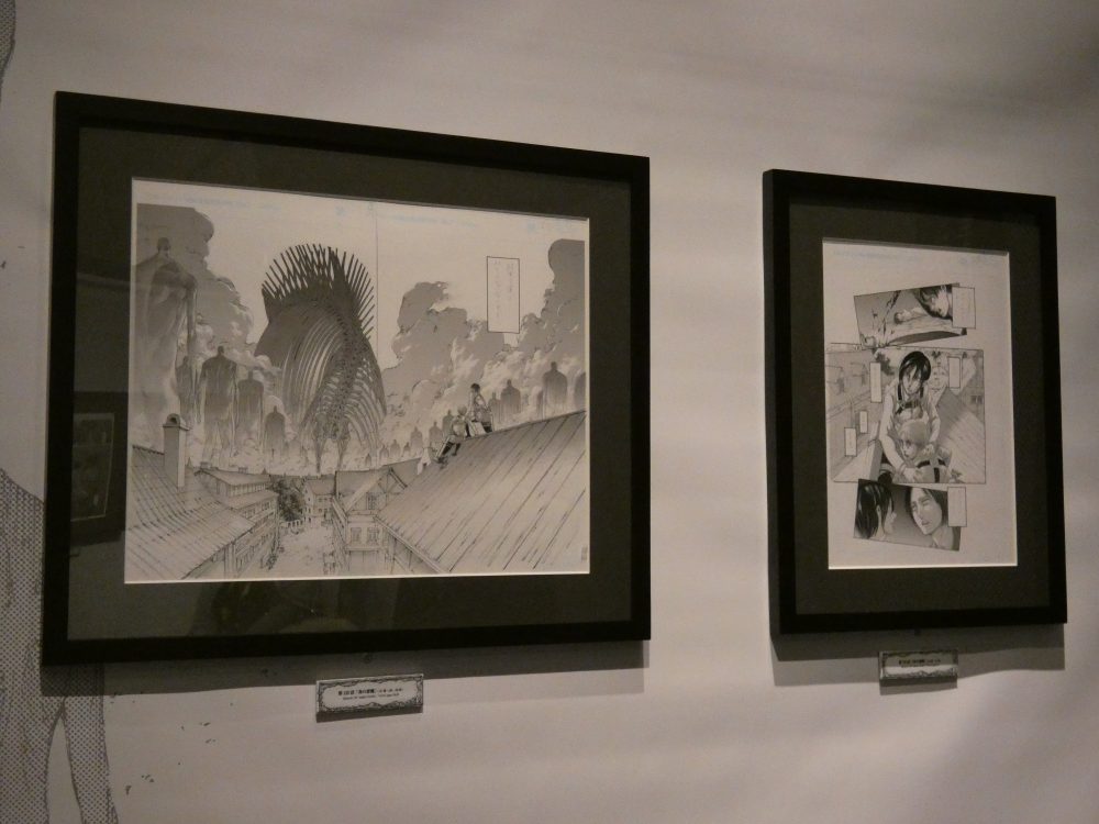 展示の最後を飾るのは、壁一面を埋め尽くした大量の「ネーム」(漫画原稿を執筆する前の下描き)。筋書き発案段階の粗削りな筆使いや、編集者側の生々しい指示・ダメ出しを目の当たりにして作者のピュアな思いを共有できる。ロングインタビューを5分に凝縮した諫山氏のインタビュー映像からは、物語の舞台裏を垣間見ることができる。