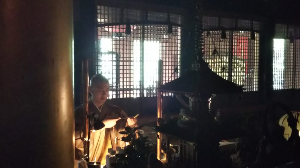 現代人にとって未知なる疫病、新型コロナウイルス。姫路市内でも93人の感染者が確認される(8月9日現在)など、新規感染者の数は拡大している。円教寺法務部長で、塔頭・妙覚院の中安剛円住職が1日も早い終息を願い、緊急事態宣言発令前の3月22日から絶やすことなく疫病退散の祈祷を続けている。