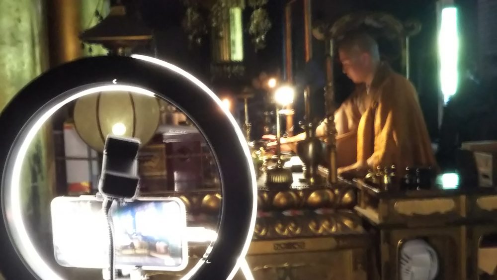 祈祷は円教寺の本堂・摩尼殿の秘仏本尊・如意輪観音の化身、弁財天の供養法で厳修され、天台密教で病気平癒などの祈願で唱える大般若経の五百七十八巻目・理趣分(りしゅぶん)が耳から体へ染み入る。毎日Facebookやホームページでライブ配信しているが、大樹玄承執事長は「皆さまにはご自宅や職場で、同じ時刻に一瞬でも一緒に祈っていただければと思う。また実際に摩尼殿にお越しになられた際には、ぜひ私どもと同じ空間を共有できたら」と話す。